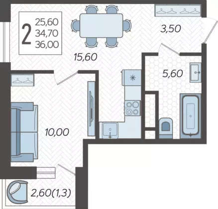 Продается однокомнатная новостройка, 36 кв.м., 10/16 эт