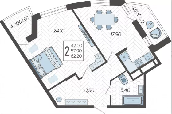 Продается 2-х комн. новостройка, 62.2 кв.м., 4/16 эт