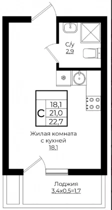 Продается Студия новостройка, 22.7 кв.м., 6/9 эт