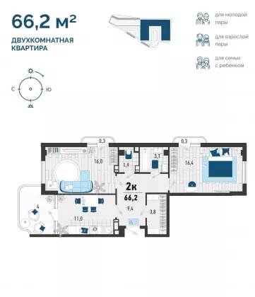 Продается 2-х комн. новостройка, 67 кв.м., 2/3 эт