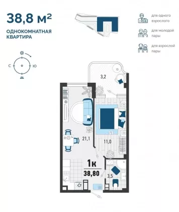 В избранное однокомнатная квартира