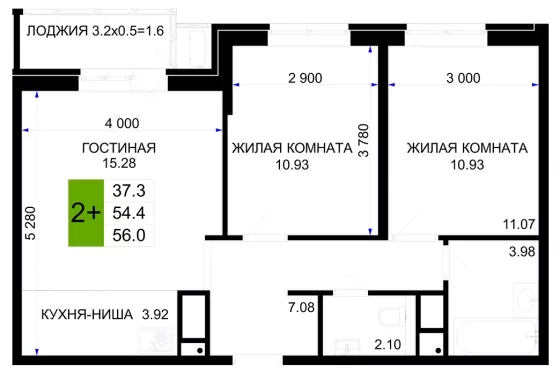 Продается 2-х комн. новостройка, 56 кв.м., 7/16 эт
