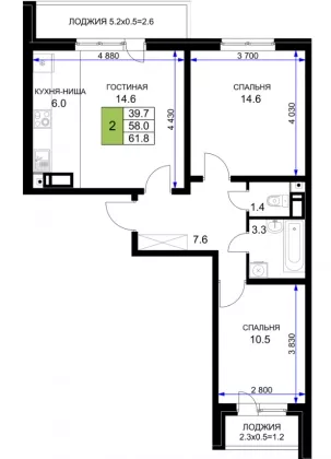 Продается 2-х комн. новостройка, 63.15 кв.м., 6/16 эт