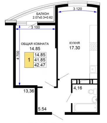 | Площадь, кв.м. | 42.88 |