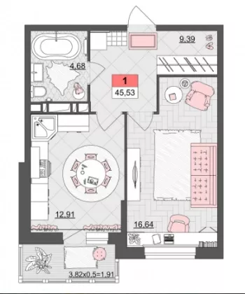 Однокомнатная квартира в строящемся комплексе класса комфорт+
