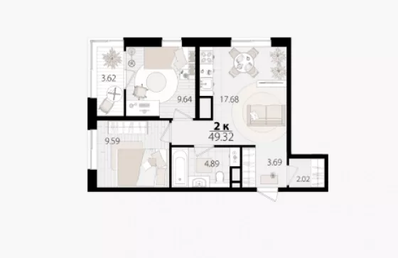Продается 2-х комн. новостройка, 49.32 кв.м., 4/9 эт