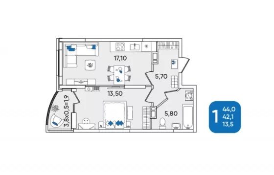 Продается однокомнатная новостройка, 44 кв.м., 16/24 эт
