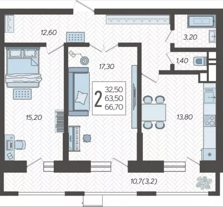 Продается 2-х комн. новостройка, 66.7 кв.м., 11/12 эт