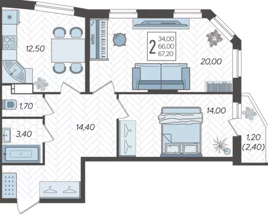Продается 2-х комн. новостройка, 67.2 кв.м., 9/16 эт