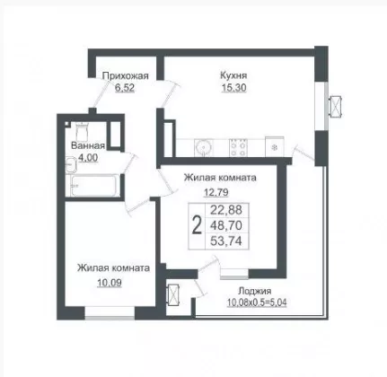 Продается 2-х комн. новостройка, 53.74 кв.м., 11/16 эт