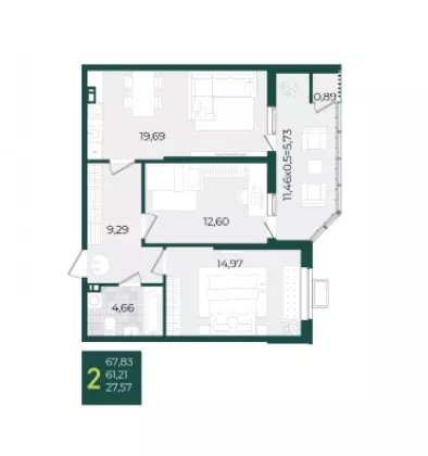 Продается 2-х комн. новостройка, 67.83 кв.м., 8/21 эт