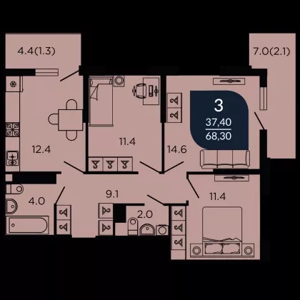 Продается 3-х комн. новостройка, 71.2 кв.м., 15/23 эт