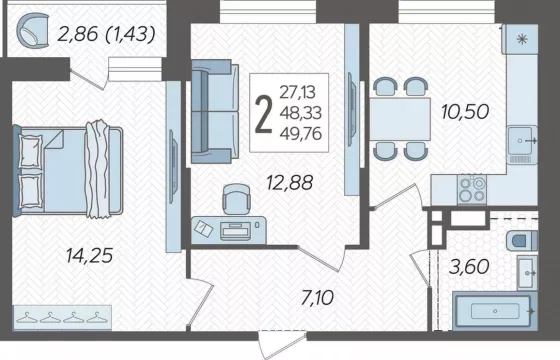 Продается 2-х комн. новостройка, 49.76 кв.м., 10/16 эт