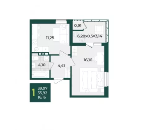 Продается однокомнатная новостройка, 39.97 кв.м., 10/21 эт