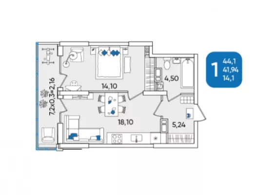 Продается однокомнатная новостройка, 44.1 кв.м., 9/24 эт