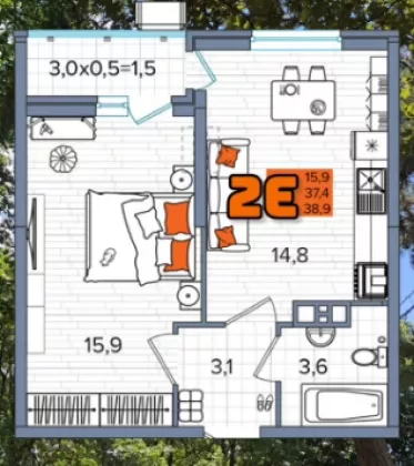 Продается однокомнатная новостройка, 38.9 кв.м., 12/16 эт
