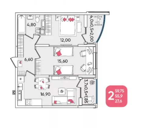 | Площадь, кв.м. | 59.75 |