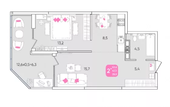 | Площадь, кв.м. | 53.6 |