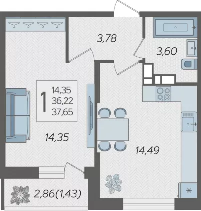 | Площадь, кв.м. | 37.65 |