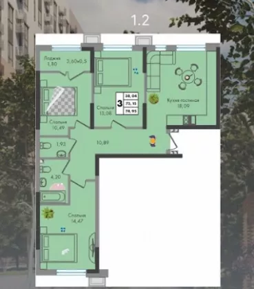 Продается 3-х комн. новостройка, 74.95 кв.м., 8/9 эт