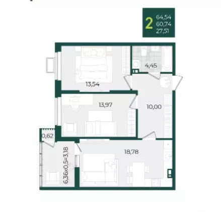 Продается 2-х комн. новостройка, 64.54 кв.м., 6/21 эт