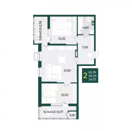 Продается 2-х комн. новостройка, 65.51 кв.м., 14/21 эт