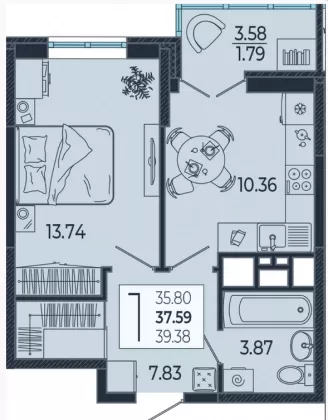 Продается однокомнатная новостройка, 39.38 кв.м., 11/21 эт