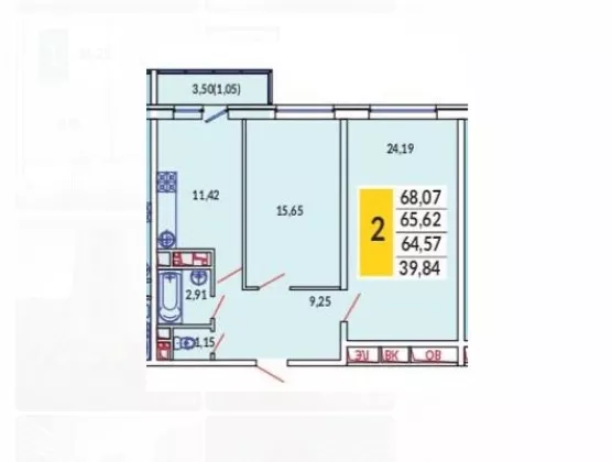 | Жилая площадь | 39.84 |