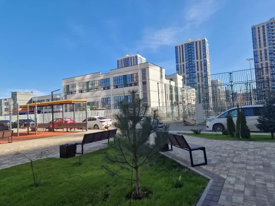 Двухкомнатная квартира в современном доме класса комфорт. Красивые, дизайнерские входные группы, система умный дом, продуманный ландшафтный дизайн, облагороженная территория на которой расположена зеленая аллея, поющий фонтан, удобные скамейки для отдыха и детские площадки. Рядом новая школа, детский сад и два торговых центра. Район достаточно развит в шаговой доступности есть все что нужно для комфортной жизни. Отличная планировка с просторной кухней гостиной, витражным остеклением на две стороны дома. Звоните, с удовольствием отвечу на все ваши вопросы.