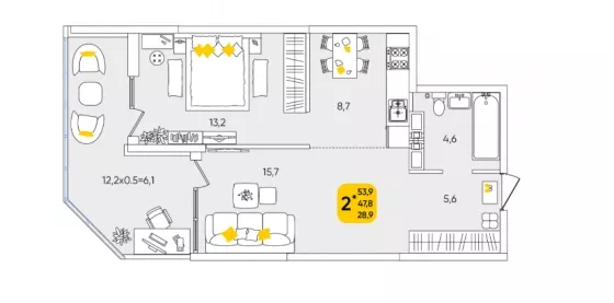 В избранное Двухкомнатная квартира