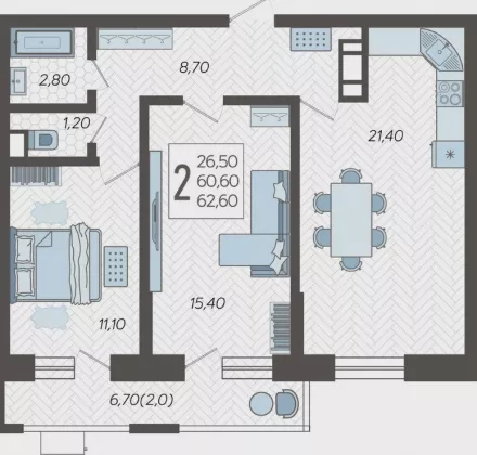 | Площадь, кв.м. | 62.6 |
