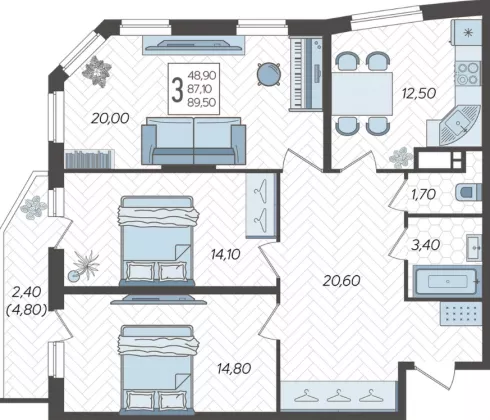 Продается 3-х комн. новостройка, 89.5 кв.м., 6/16 эт