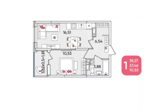 Продается однокомнатная новостройка, 39.45 кв.м., 24/24 эт