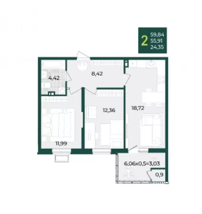 Продается 2-х комн. новостройка, 59.84 кв.м., 14/21 эт