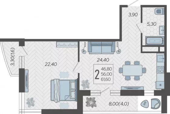 В избранное двухкомнатная квартира