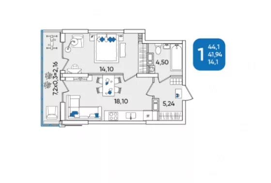 Продается однокомнатная новостройка, 44.1 кв.м., 8/24 эт