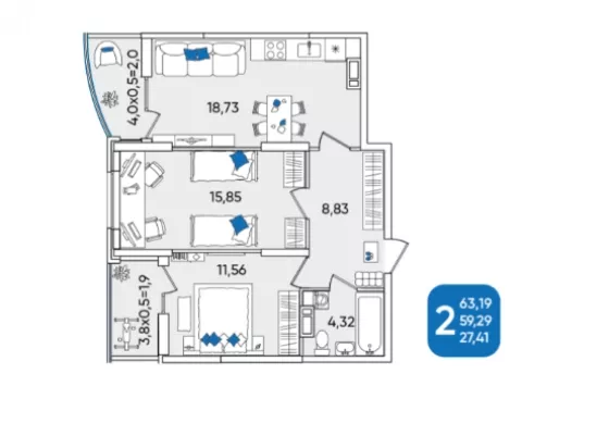 Продается 2-х комн. новостройка, 63.1 кв.м., 10/24 эт