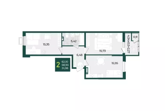 Продается 2-х комн. новостройка, 62.1 кв.м., 16/21 эт