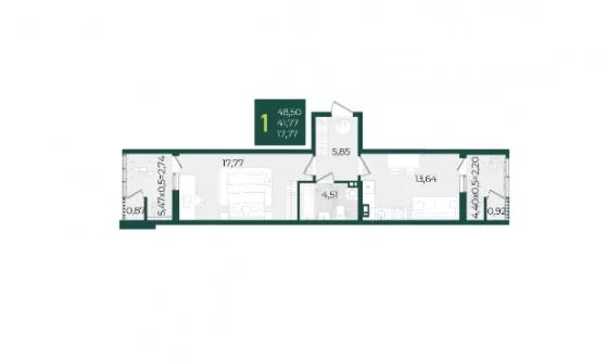 Продается однокомнатная новостройка, 48.08 кв.м., 9/21 эт