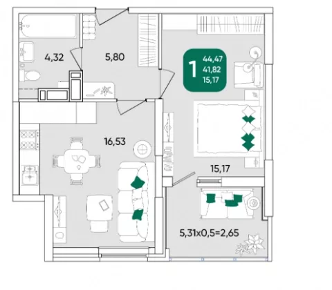 Продается однокомнатная новостройка, 44.47 кв.м., 5/24 эт