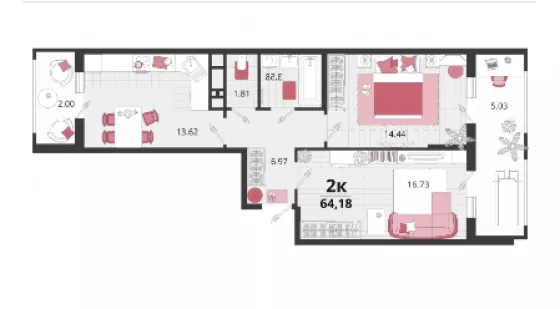 Продается 2-х комн. новостройка, 64.18 кв.м., 12/18 эт