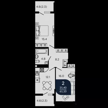 Продается 2-х комн. новостройка, 62.7 кв.м., 5/23 эт