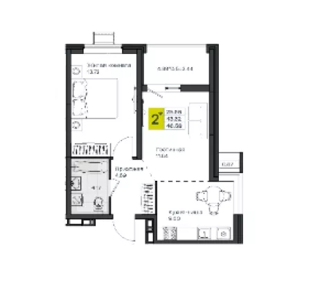 Продается 2-х комн. новостройка, 46.58 кв.м., 7/8 эт