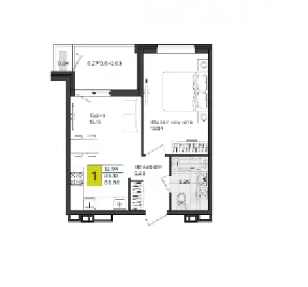 Продается однокомнатная новостройка, 39.6 кв.м., 3/8 эт