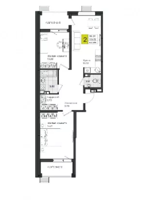 Продается 2-х комн. новостройка, 63.99 кв.м., 6/8 эт