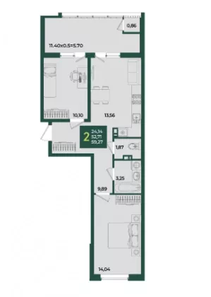 Продается 2-х комн. новостройка, 59.27 кв.м., 10/21 эт