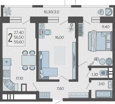 Продается 2-х комн. новостройка, 59.6 кв.м., 4/12 эт