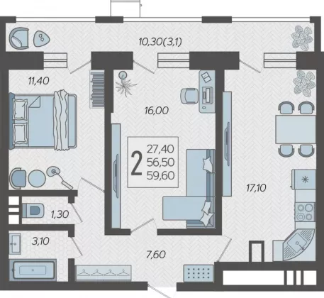Продается 2-х комн. новостройка, 59.6 кв.м., 8/12 эт