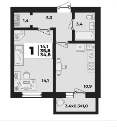 Продается однокомнатная новостройка, 35.8 кв.м., 5/5 эт