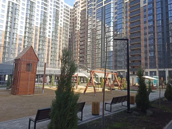 Новый микрорайон построен по формату комплексной застройки. Школа, четыре детских сада, поликлиника, парковая зона, прогулочные аллеи, детские и спортивные площадки, тематические зоны отдыха для взрослых и детей всех возрастов.